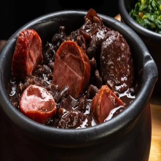 Feijoada acompanhada de Arroz, Couve refogada, Farofa de Manteiga e Vinagrete