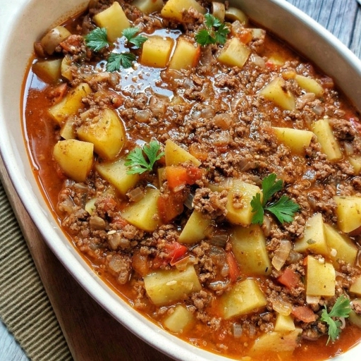 Carne Moída com Batata acompanhada de Arroz, Feijão em caldo ou tropeiro, Macarrão ou Verduras ou Purê ou Farofa de ... Ver completo