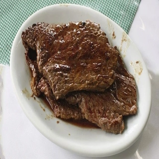 Bife de Carne acompanhada de Arroz, Feijão em caldo ou tropeiro, Macarrão ou Verduras ou Purê ou Farofa de Manteiga o... Ver completo